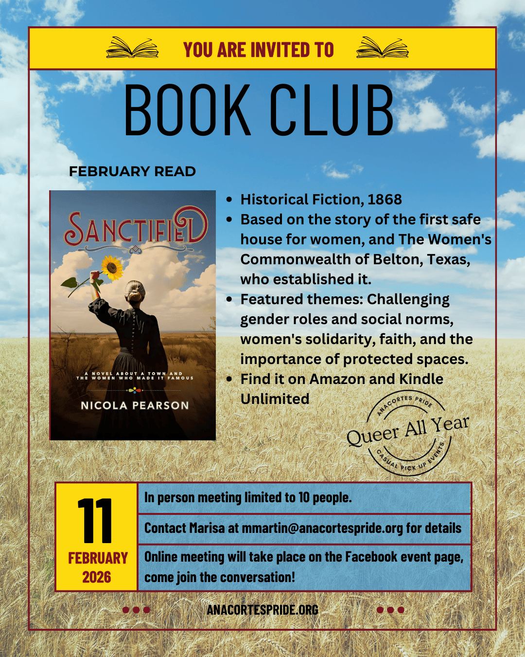 Donations to non-profit Anacortes Pride will be used for community events and on basic expenses, like keeping our website and email server up.
