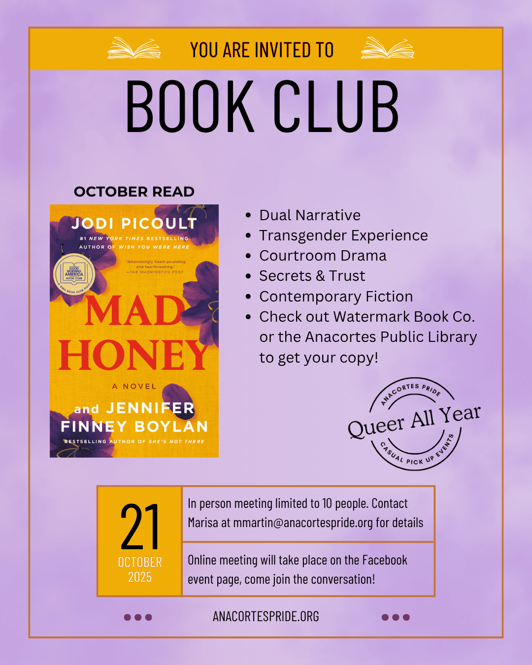 Donations to non-profit Anacortes Pride will be used for community events and on basic expenses, like keeping our website and email server up.